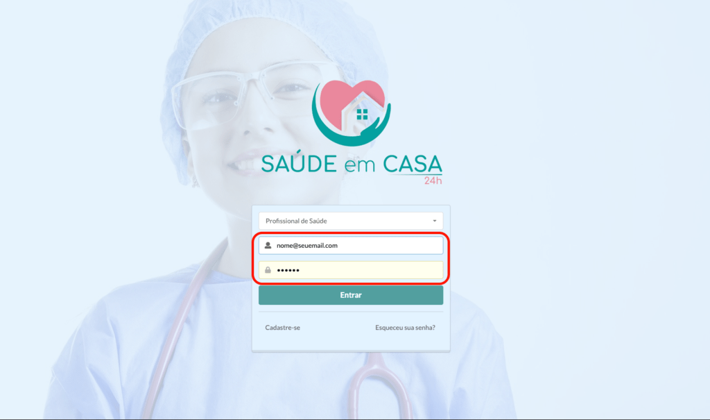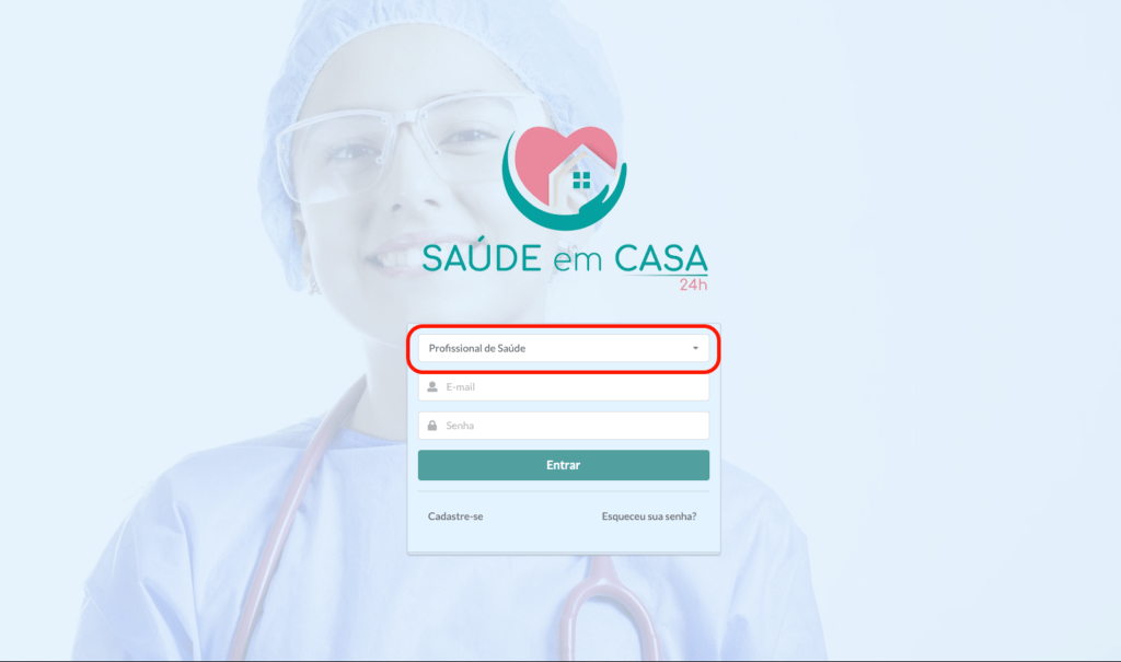 Clique no botão “Eu sou…” e selecione a opção “Profissional da saúde“