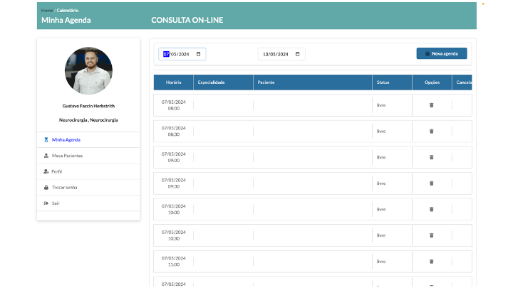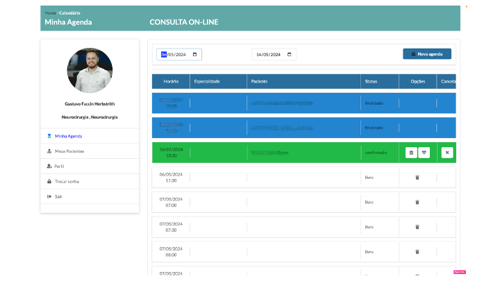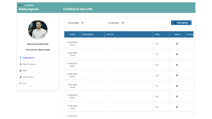 Na sua tela inicial você verá suas agenda de consultas.