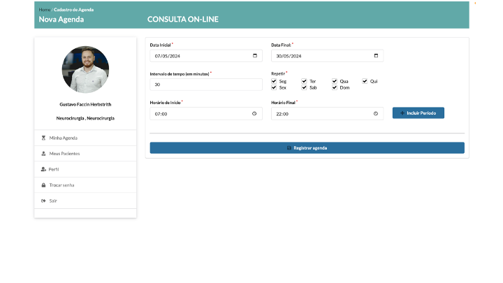Preencha os horários que deseja estar disponível para os atendimentos e clique no botão “Incluir período”