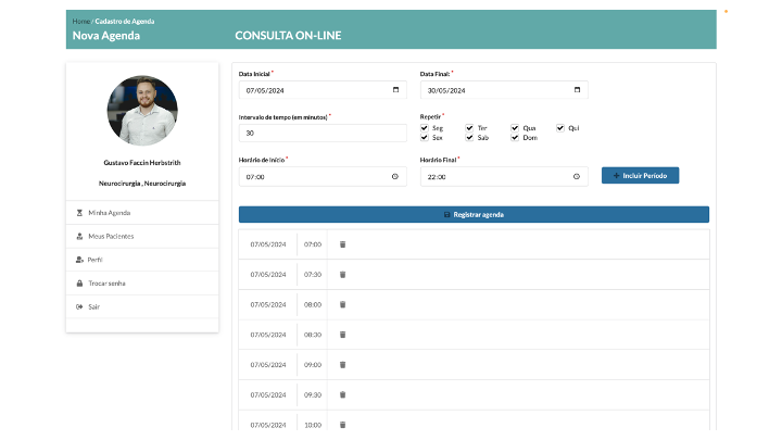 Estando todos seus horários conforme o esperado confirme sua agenda no botão “Registrar agenda“